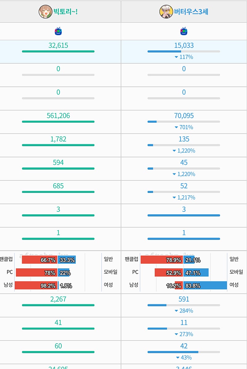 형 빅토리랑 버터우스 시청자 성비 차이 봤어?