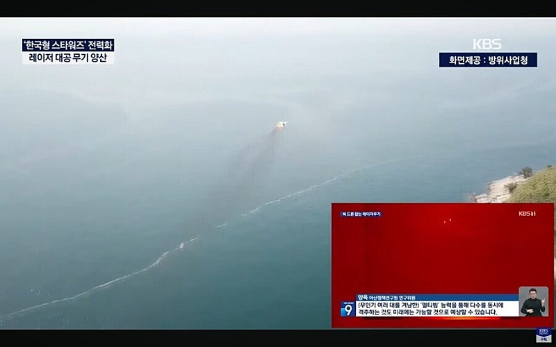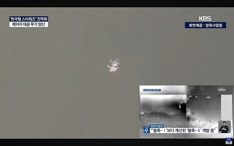 [조용진/방위사업청 대변인 : "레이저로 10~20초 정도 조사(광선 쏘기)를 함으로서 열 에너지를 700℃ 이상으로 높여서 배터리 같은 전자장비나 엔진을 태워서 격추시키는 방식입니다."]