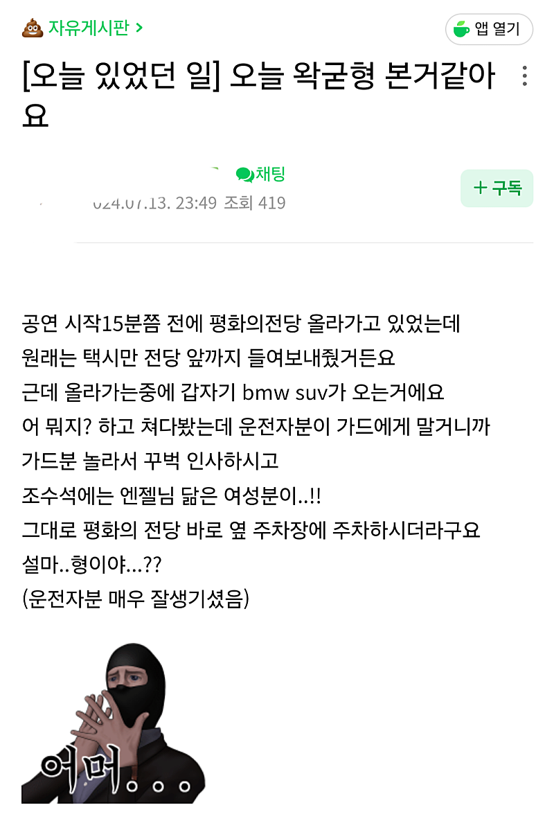 휠라굿즈 판매때 줄선거 궁금하다고 차타고 주변 어슬렁거린거 생각하면 킹능성 있을지도..