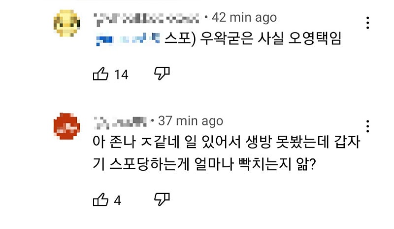 형 왁튜브에서 스포당해서 빡친 팬치 봤어?