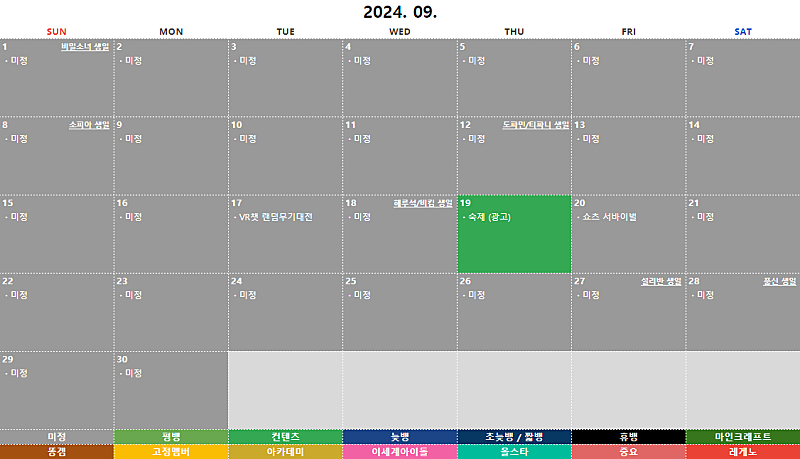 본 일기장은 단순 참고용이며, 추후 진행하는 방송 일정과 다소 차이가 있을 수 있습니다.