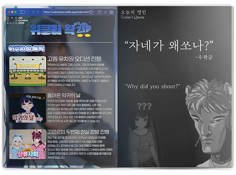 주간왁물원 8월2주(100호이자 2주년)