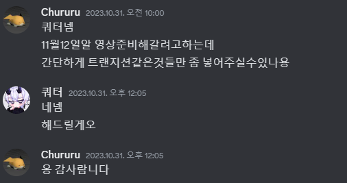 다들 경악을 하셔서 퇴근하자마자 영상 편집을 다시하고 1절을 3시간 동안 통 편집을 하게 된 작품이 나오게 되었습니다.