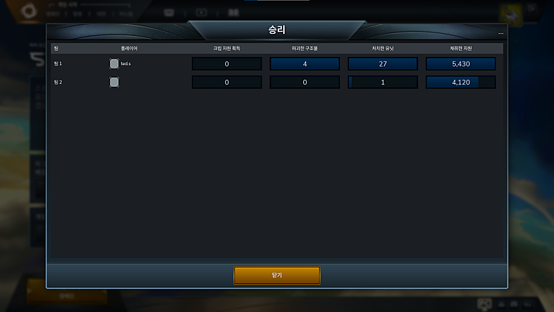 ② 왁물원 '스톰게이트' 게시판에 <스톰게이트> 승리 데이터 화면 캡쳐 (승리화면❌)