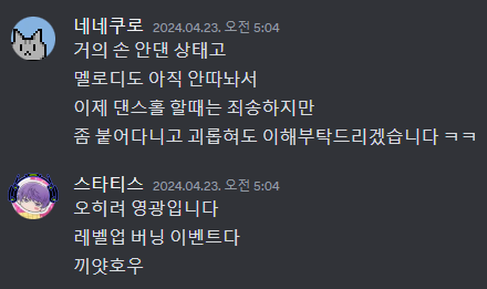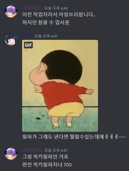 "이히히 신난다 릴파님 작업이다 댄스홀이다 이히히"