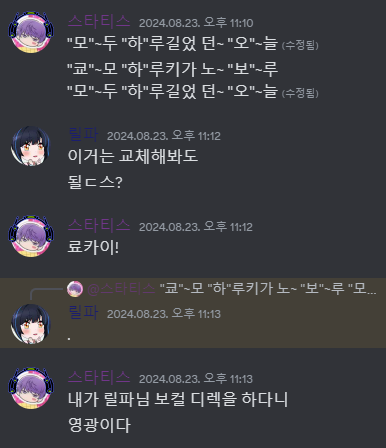 감사하게도 개사본에 대해서 자유롭게 의견을 주셨습니다!