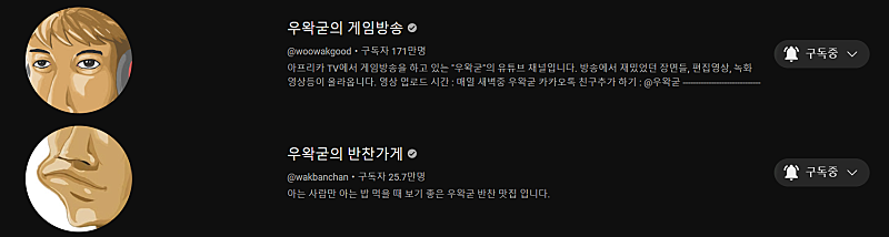 와굳님 유튜부 구독목록에서 보면