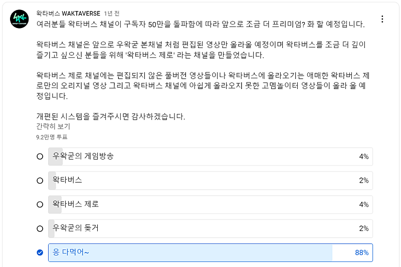 우왁굳의 돚거 채널 개설-2022.11.10