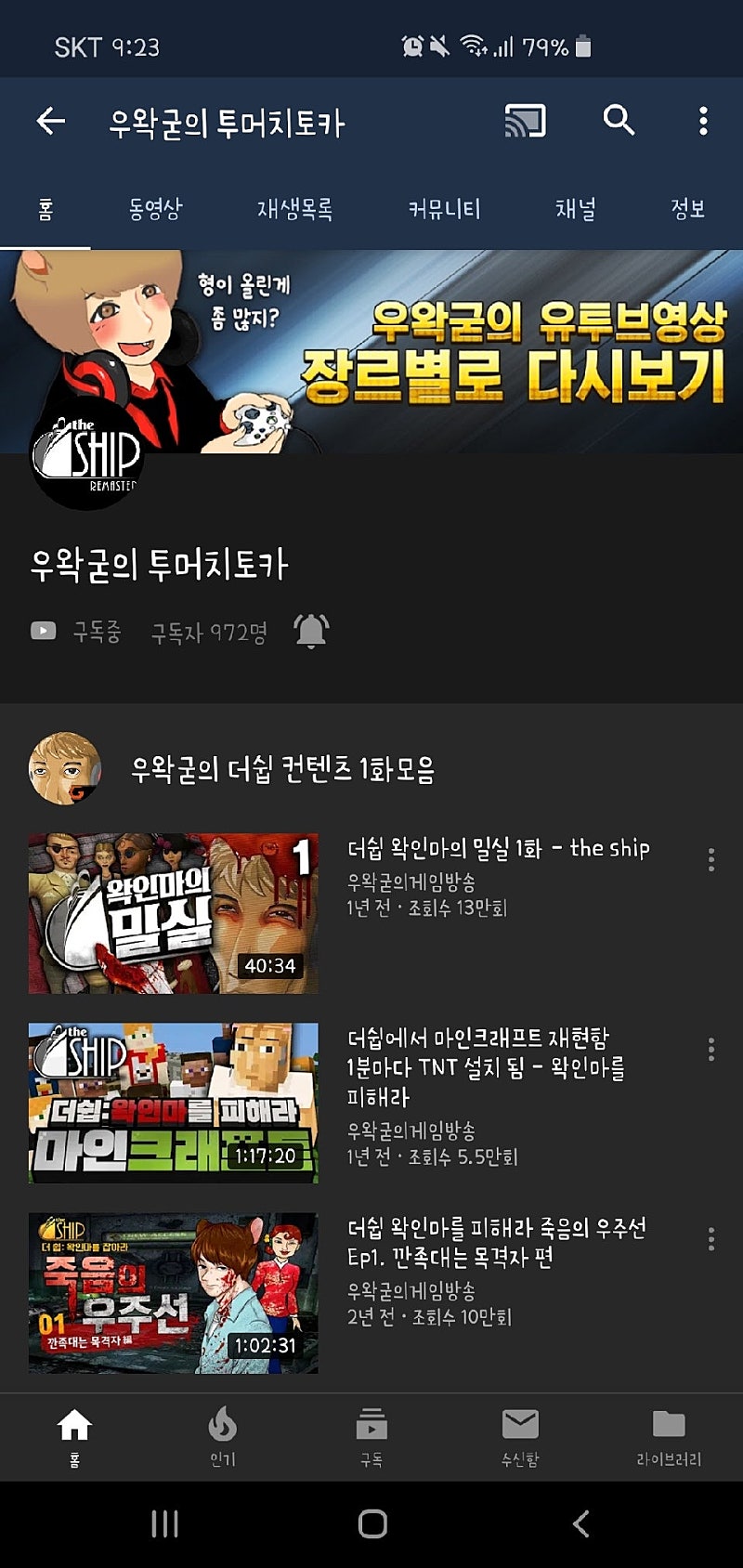 우왁굳의 더쉽(왁튜브 게임장르별로 보기) 개설-2015.3.19