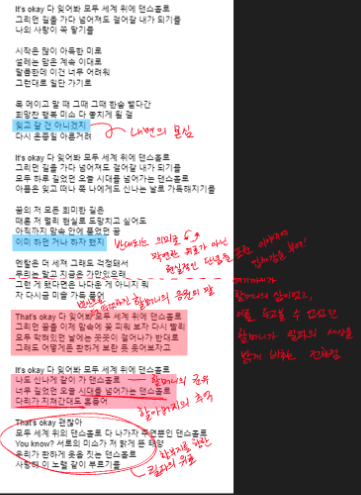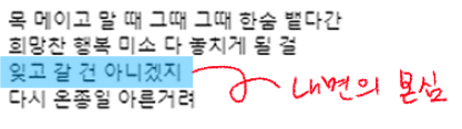 따라서 스스로에게 '괜찮겠어?'라고 되묻는 듯한 가사가 아주 적절하게 들어간 부분이었습니다!