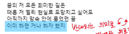 꿈을 반대한다는 나름대로의 사정을 넣어놨었습니다.
