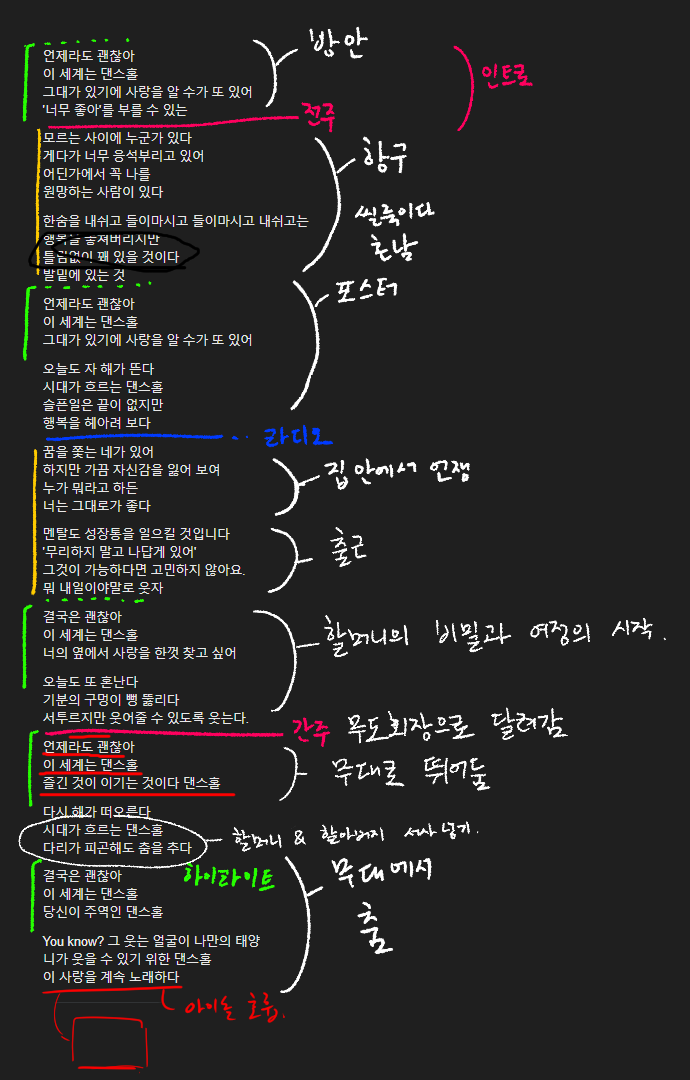 -댄스홀은 기본적으로 아주 밝고 위로가 가득한 행복한 곡이었습니다.