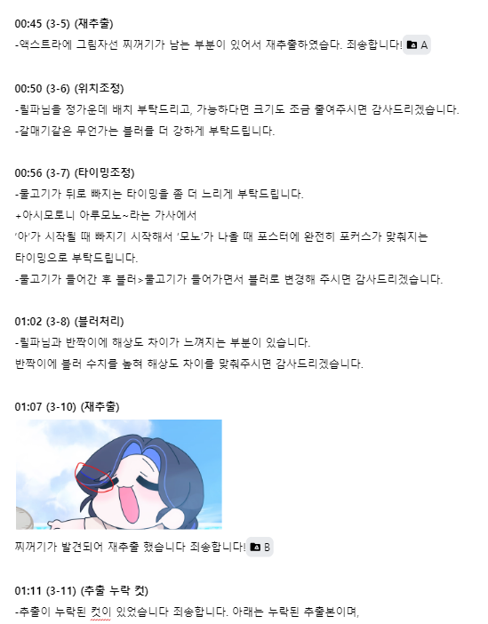 콘티를 보시게 제가 요청드린 부분들 외에도