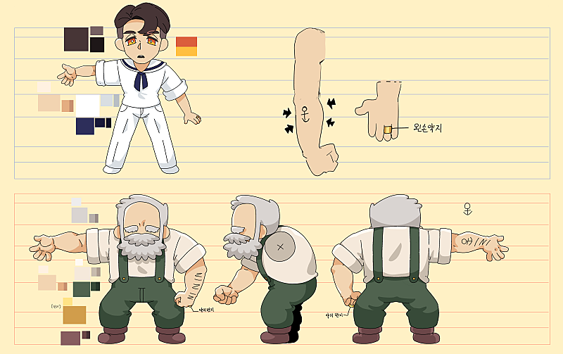 캐릭터 제작 도중 할아버지와 할머니의 과거사 이야기가 두터워지면서
