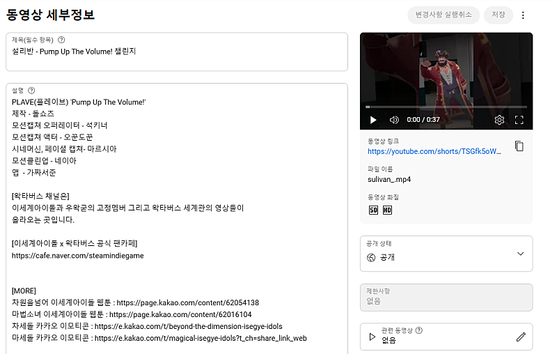 쇼츠는 업로드 할떄 따로 원곡 정보 등록하는 곳 없어요