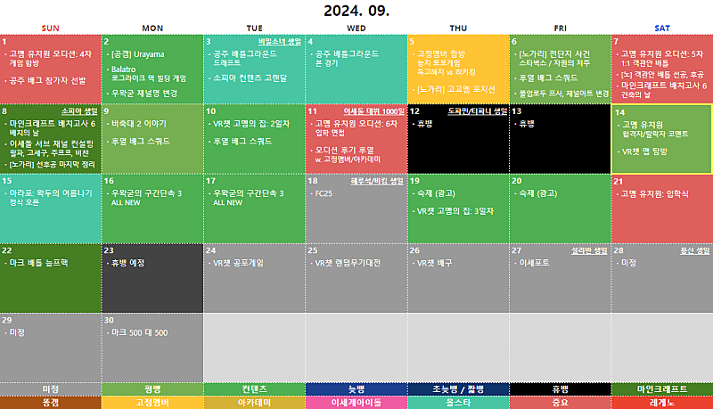 본 일기장은 단순 참고용이며, 추후 진행하는 방송 일정과 다소 차이가 있을 수 있습니다.