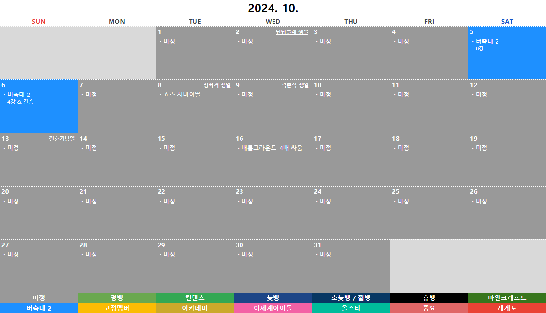 2024년 10월 ① 버축대 2 (예정) ② 고멤 인기투표
