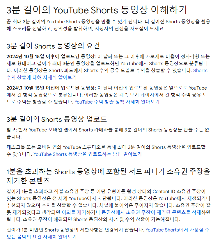 유튜브가 10월 15일부터 최대 3분 영상도 쇼츠로 분류된다고 합니다
