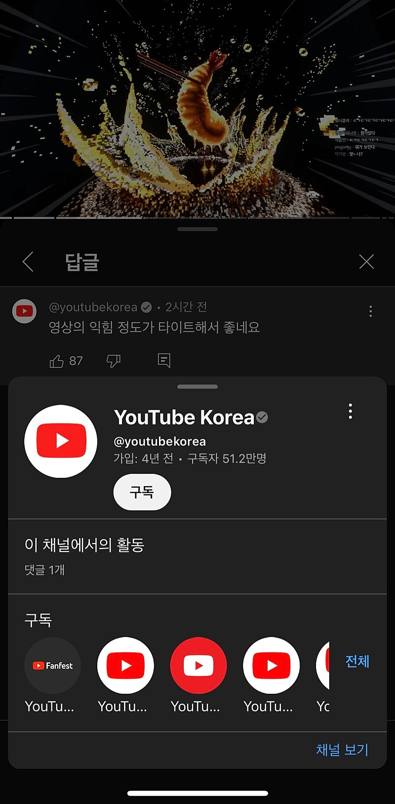 형 유튭에서 댓글 달아주신 거 봤어?