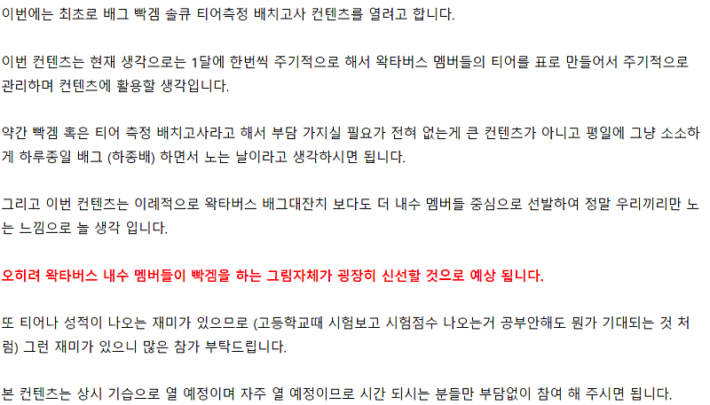 돌아오는 화요일에 제 2회 왁타버스 배그 티어게임을 할 예정입니다.