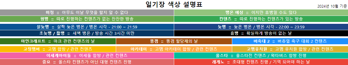 본 일기장은 단순 참고용이며, 추후 진행하는 방송 일정과 다소 차이가 있을 수 있습니다.