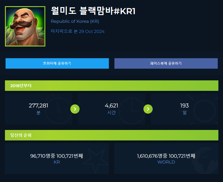 총 플레이타임 4,621시간.