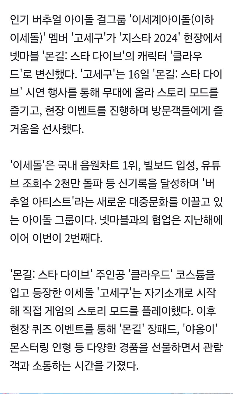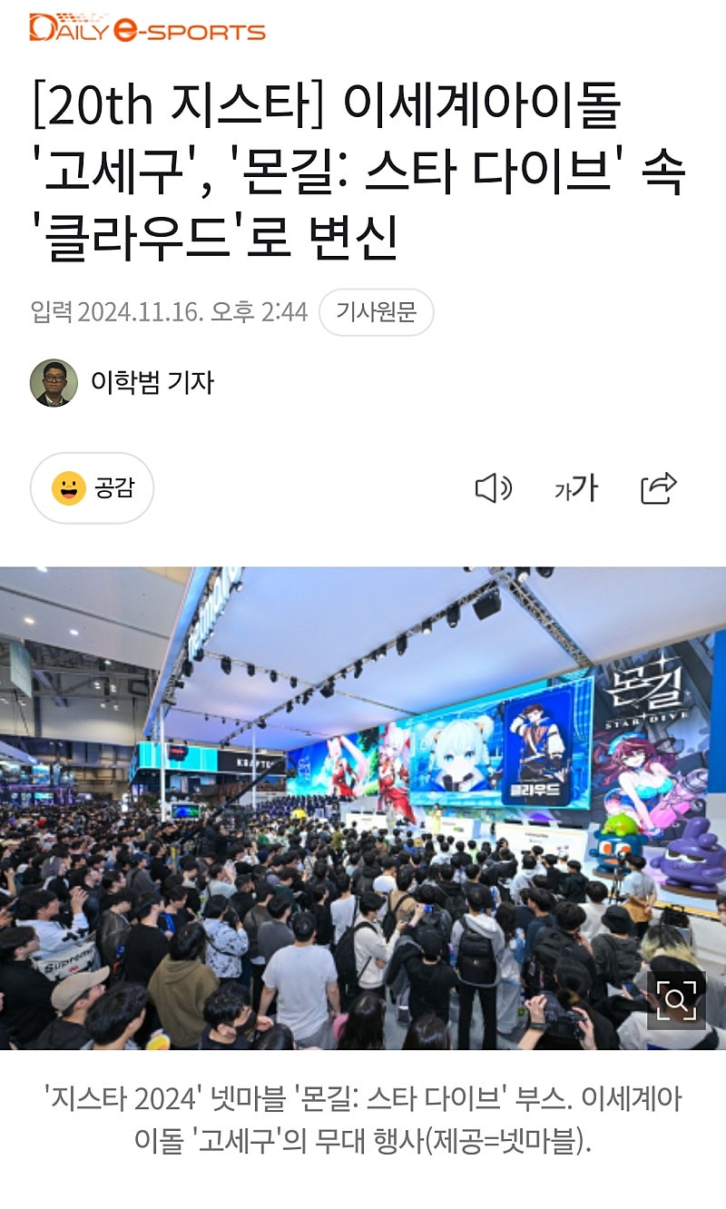 형 세구님 지스타 기사나온거 봤어?