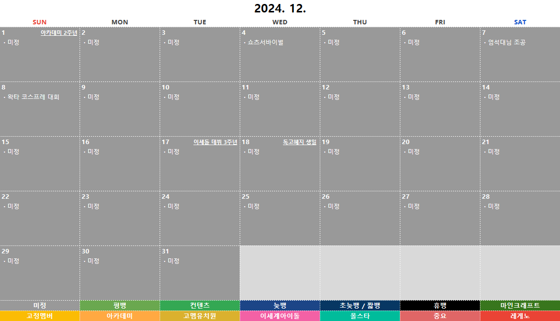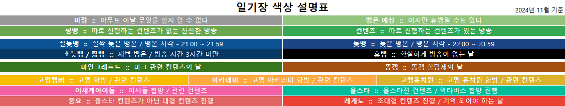 본 일기장은 단순 참고용이며, 추후 진행하는 방송 일정과 다소 차이가 있을 수 있습니다.
