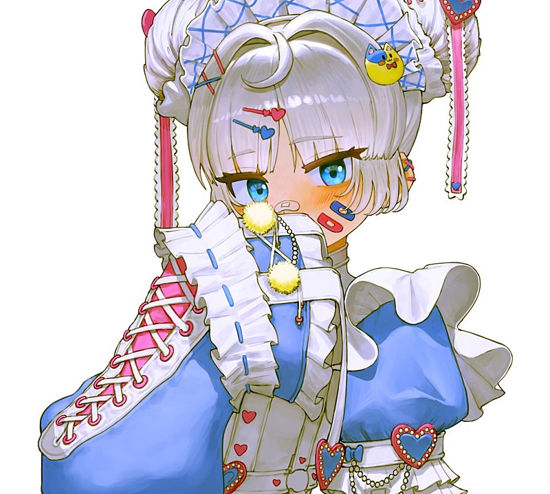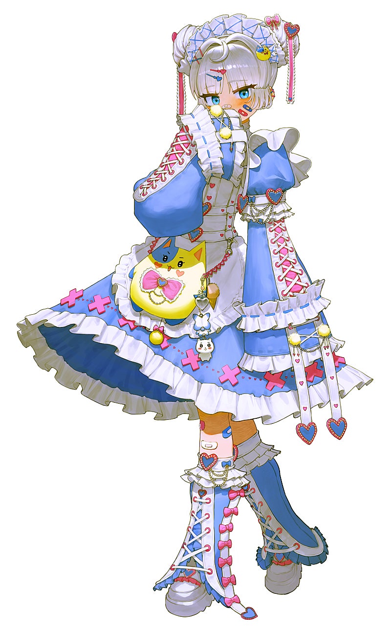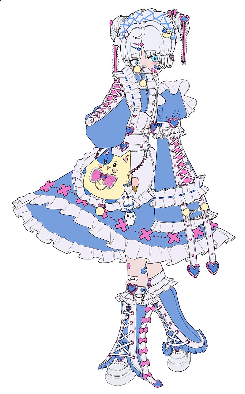 지뢰계 패션에 메이드복을 어레인지 하여 하트가 컨셉인 의상이라 프릴과 하트를 마구마구 해버렸네요.