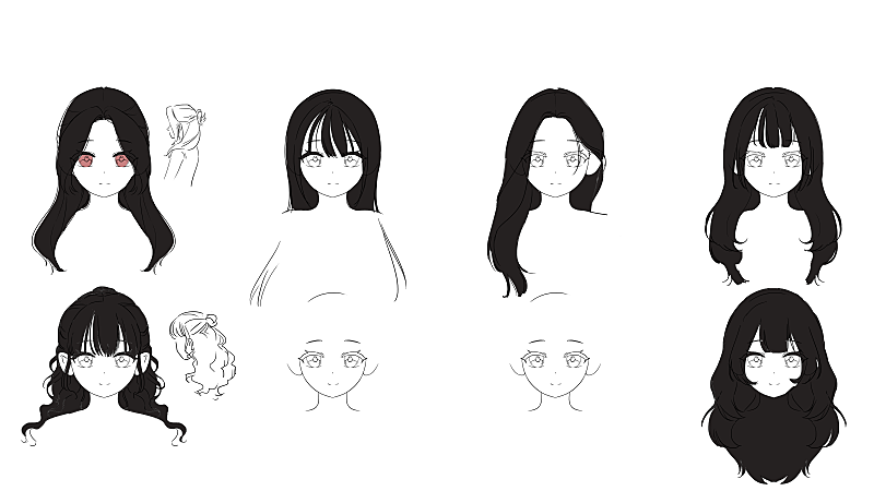 어른이 되었을때의 헤어 디자인 시안들입니다