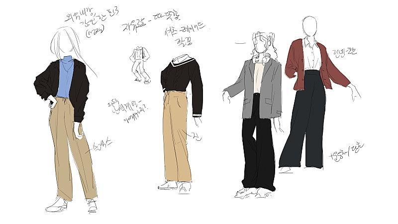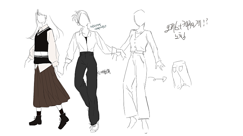 시안은 각 3개였는데 두분 퍼스날리티를 살리는 쪽으로 방향을 생각하보니까 교복종류도 종류지만