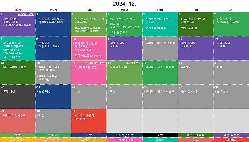 아래에 작성된 계획표는 변경될 가능성이 아주 높습니다.