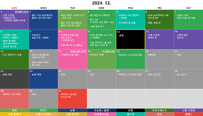 아래에 작성된 계획표는 변경될 가능성이 아주 높습니다.