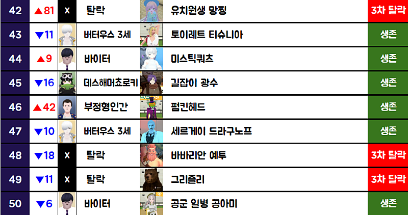 그렇게 시간이 흐르고 인기투표로 합불이 정해질때...