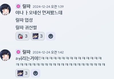 저걸 보고 릴파님이 미치셨냐고 크게 웃었습니다.