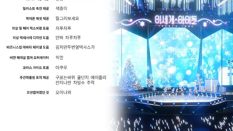 캐스트 소개 부분은 기존 아이마스 엔딩크레딧을 오마주하여 작업을 진행했습니다