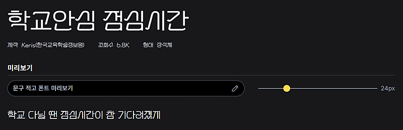 티저 포스터에서는 학교안심 점심시간체를 사용했습니다. (작은글자는 HG꼬딕씨 / 유료)