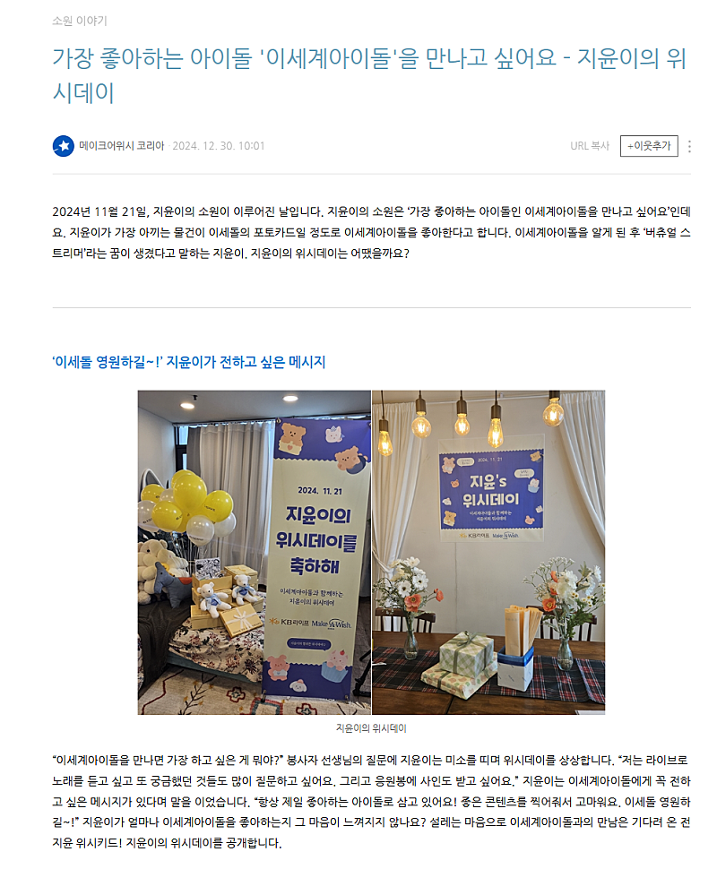 '지윤'이라는 아이가 이세계아이돌 덕분에 행복한 시간을 보내게되어 고맙다는 말씀을 전하고싶다 합니다
