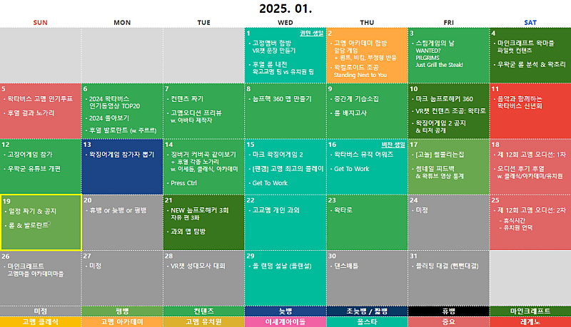 ⑦ 구간단속 ⑧ 2025 염색체 ⑨ 버축대3 ⑩ 고멤드림팀2 ⑪ 복싱 ⑫ 보물찾기2 ⑬ 마크 고교멤 마을 ⑭ 상황극 콘테스트