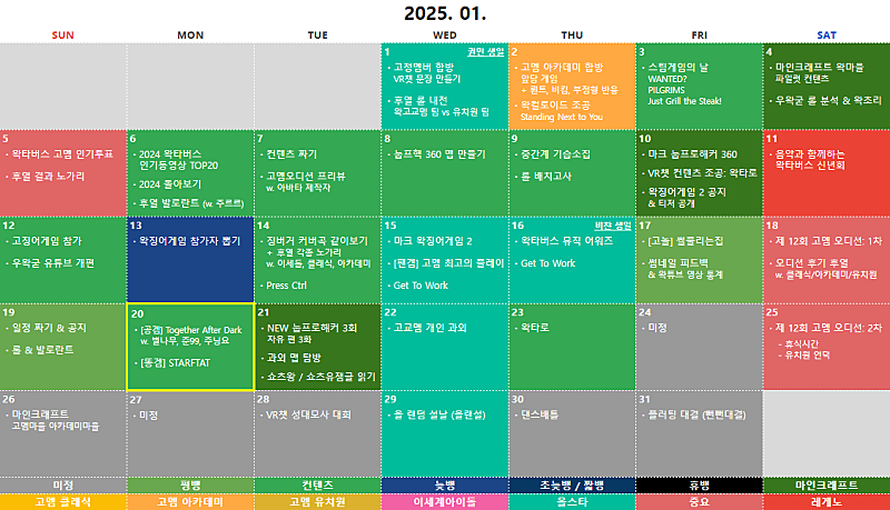 ⑦ 구간단속 ⑧ 2025 염색체 ⑨ 버축대3 ⑩ 고멤드림팀2 ⑪ 복싱 ⑫ 보물찾기2 ⑬ 마크 고교멤 마을 ⑭ 상황극 콘테스트