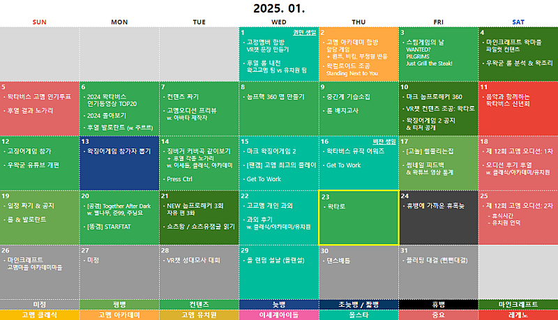 ⑦ 구간단속 ⑧ 2025 염색체 ⑨ 버축대3 ⑩ 고멤드림팀2 ⑪ 복싱 ⑫ 보물찾기2 ⑬ 마크 고교멤 마을 ⑭ 상황극 콘테스트