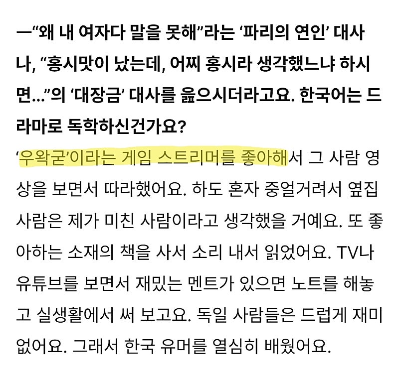 뉴스 인터뷰인지 기사에서 말씀하셨던 적 있는 걸로 기억합니다