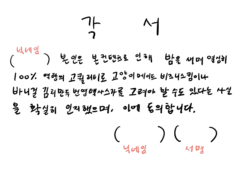 ex) 빅토리님 그려왔어요X 세일러복 빅토리님 그려왔어요 O