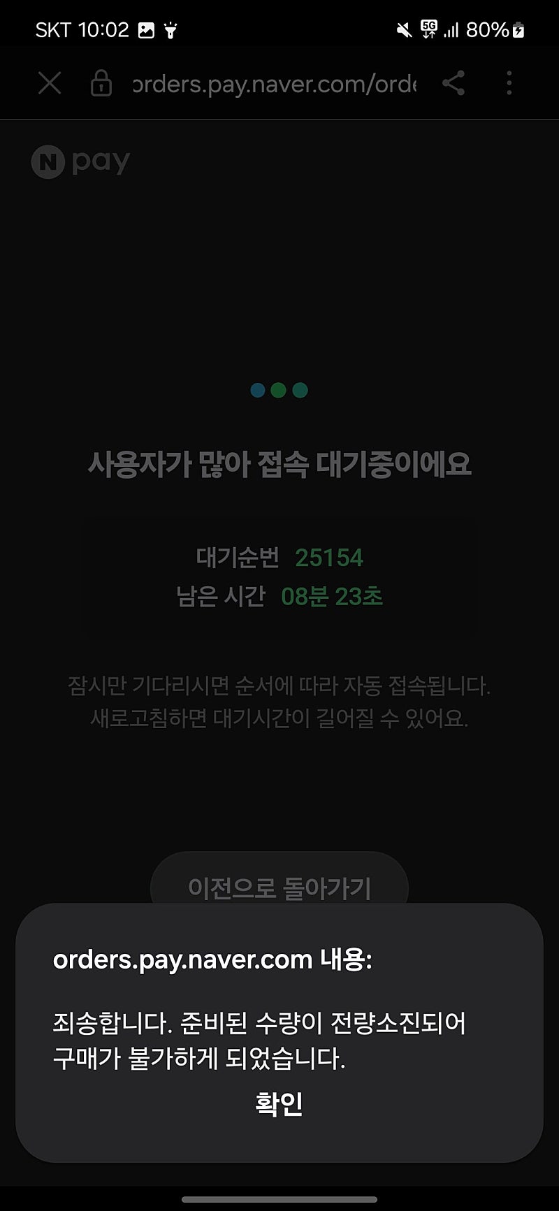 2번 튕김 억까 후 품절 경험