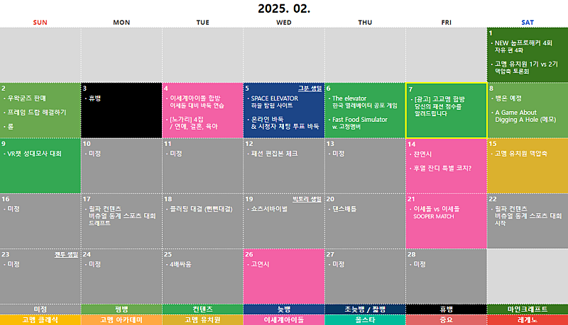 ⑭ 구간단속 ⑮ 2025 염색체 ⑯ 버축대3? ⑰ 고멤드림팀2 ⑱ 복싱 ⑲ 마크 고교멤 마을 ⑳ 상황극 콘테스트