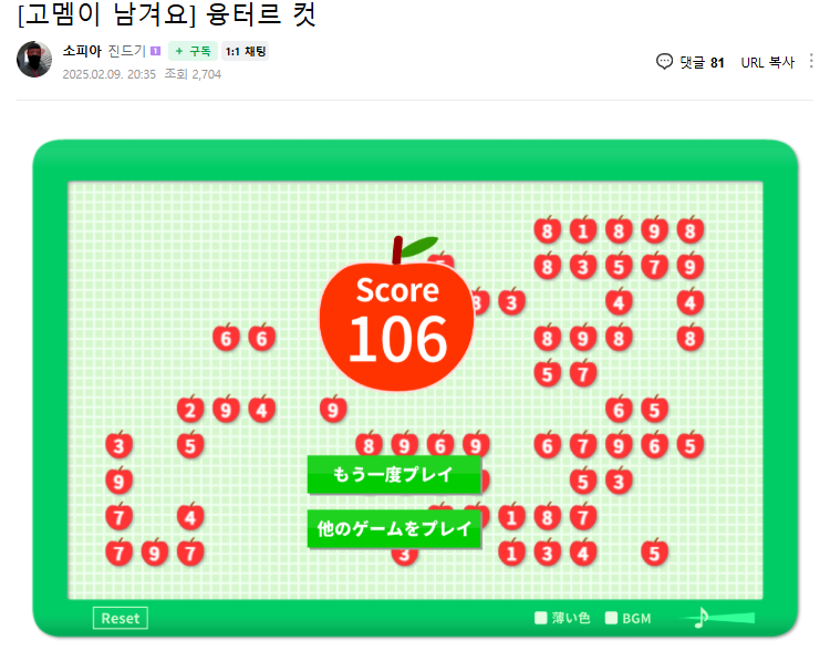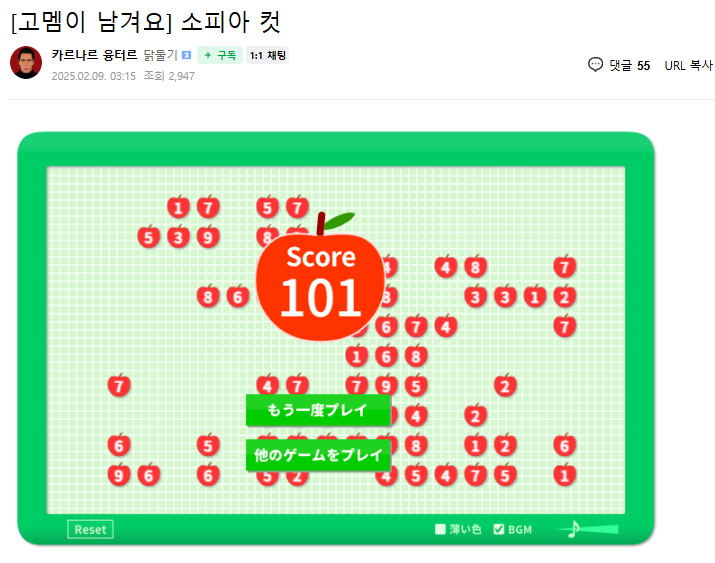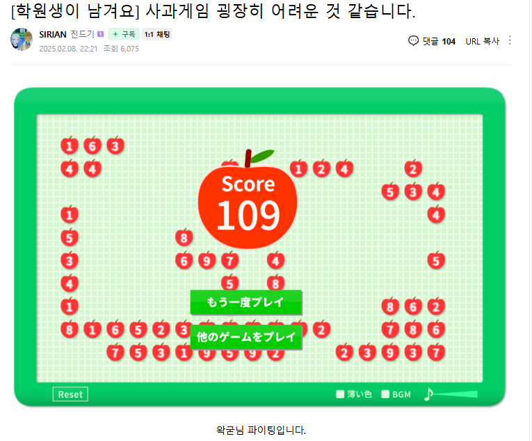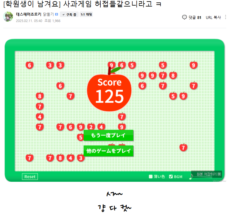 대신 사과게임 점수봤어? 로 바꿨습니다