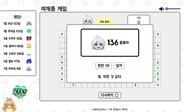 부가땅 사과게임 왤케 잘해