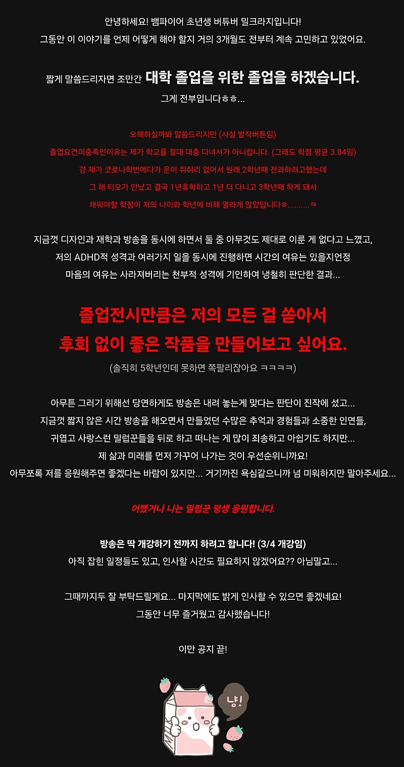 형 밀크라지님 졸업하시는 거 봤어?