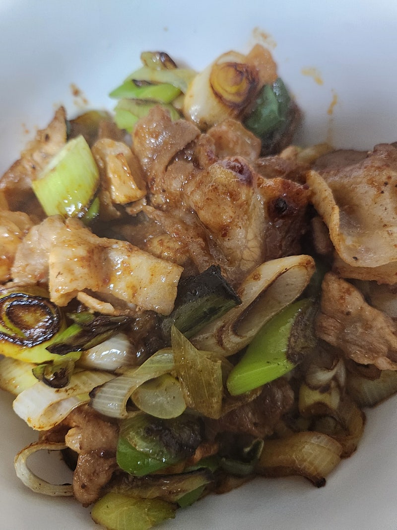 다른 제육처럼 빨간색이 진하지 않습니다.