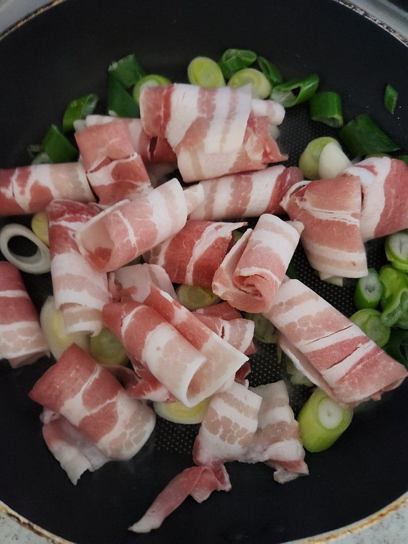 여기서 포인트는 기름,팬을 달구고 파를 넣는게 아니라